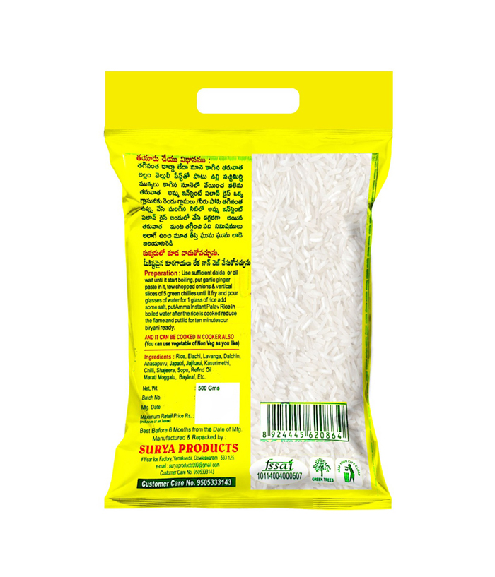For the first time in Andhra Pradesh, Surya Products made Instant Biryani Mix with Karnool Sona Rice. Basmati Rice is known for its taste, fragrance and size. Surya Products has taken the effort to select the long grain Basmati rice with the typical aroma of Basmati.