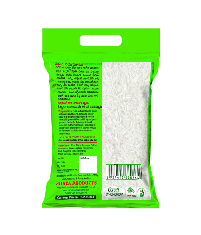 For the first time in Andhra Pradesh, Surya Products made Instant Biryani Mix with Karnool Sona Rice. Basmati Rice is known for its taste, fragrance and size. Surya Products has taken the effort to select the long grain Basmati rice with the typical aroma of Basmati.