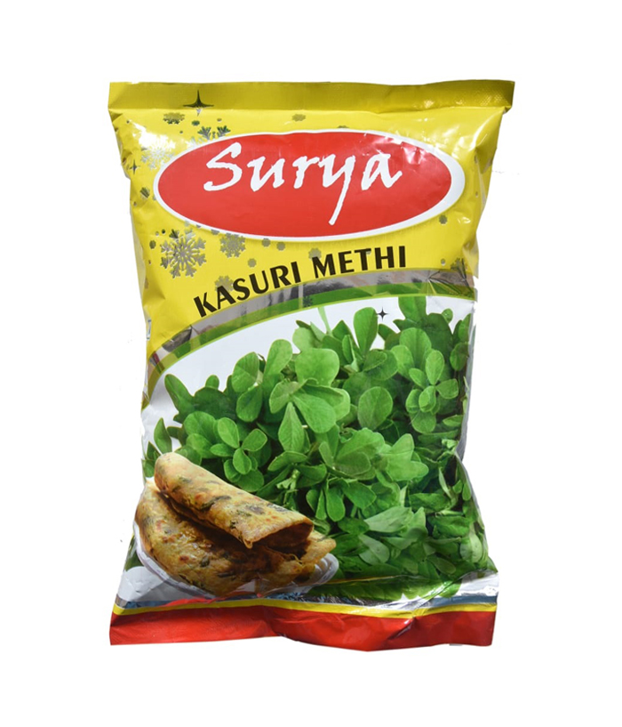 The wide range of Menthaku (Kasuri Methi) from the house of Surya Products. Menthaku is made from dried methi/fenugreek leaves, neutralizing strong tastes and simultaneously enhancing the flavors of other spices. Surya Products are packed using state-of-the-art equipment ensuring minimal human contact.